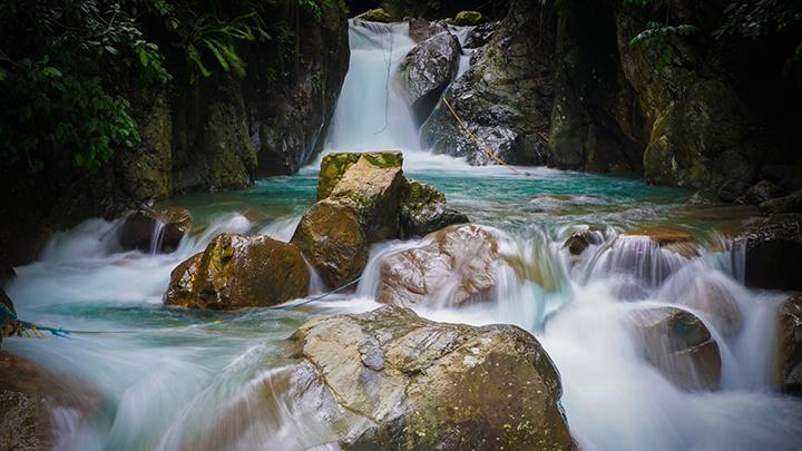 Setelah membayar tiket masuk sebesar Rp25.000 per orang, kami mulai trekking menuju air terjun. Jalannya cukup menanjak dengan beberapa bagian berbatu yang licin, tapi tidak terlalu sulit. Karena kami pergi ramai-ramai, perjalanan terasa lebih menyenangkan. Kami bergantian bercerita, bercanda, dan berhenti sesekali untuk mengambil foto. Setelah sekitar 30 menit berjalan, suara gemuruh air mulai terdengar, menandakan kami hampir sampai. Begitu tiba, pemandangannya benar-benar indah—air jernih kehijauan mengalir di antara bebatuan besar, menciptakan kolam alami yang menggoda untuk langsung diceburi. Kami pun tak ragu melepas sepatu dan menceburkan diri. Segarnya air membuat rasa lelah akibat trekking langsung hilang.